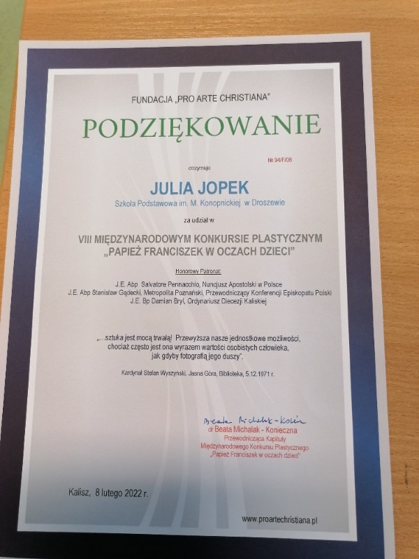 Podziękowania Fundacja Pro Art Christiana